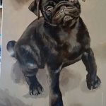 Freunde von uns haben geheiratet und sich ein Bild von ihrem Mops Frieda gewünscht. Es war toll mal wieder so richtig auf Leinwand zu malen und wenn man die ersten Phasen überstanden hat, in denen man immer wieder denkt,: „Jetzt hab ichs wohl versaut“, wird es dann doch immer irgendwie. Einfach weitermachen und am Mops bleiben.
