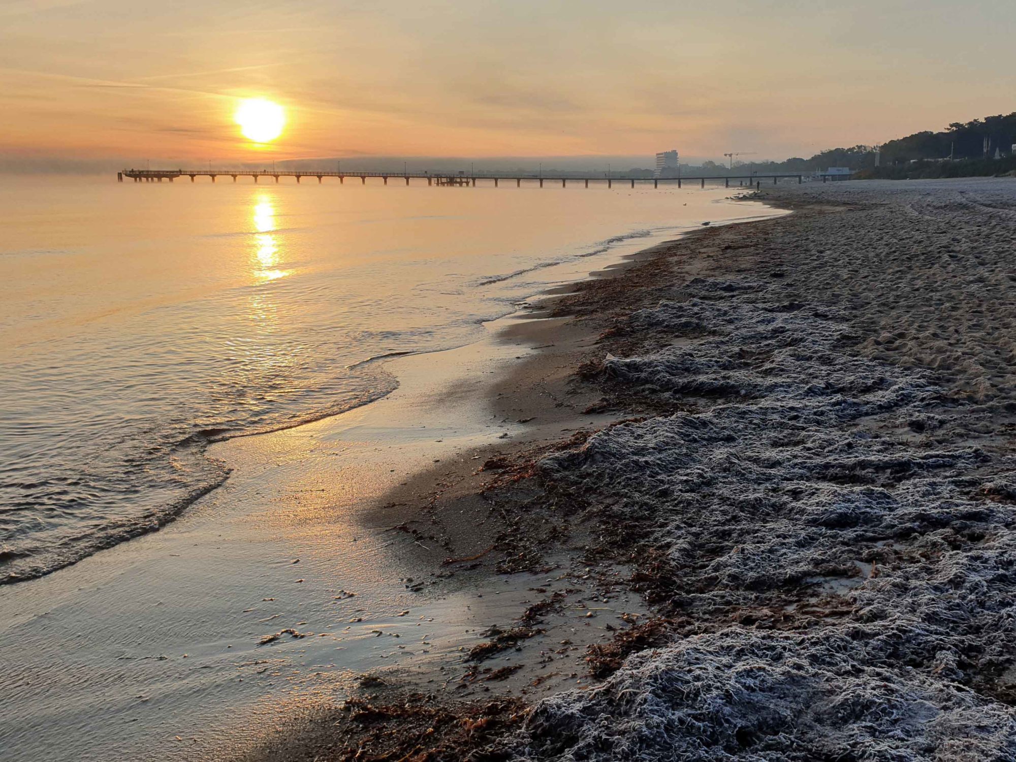 Im Winter an der Ostsee ist es wirklich magisch. Der Raureif auf den Wasserpflanzen glitzert und wenn die Sonne rauskommt, scheint sie manchmal durch einen milchigen Himmel und es steigt Nebel vom Wasser auf, den man auf der Seebrücke in kleinen Wölckchen übers Wasser ziehen sieht.