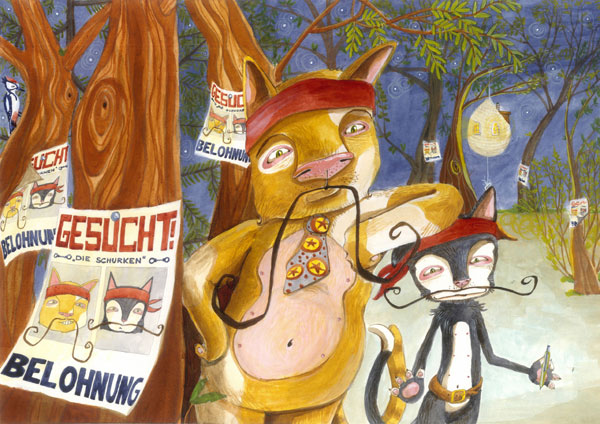 Vor kurzen habe ich das Angebot bekommen, eine Katzengeschichte für einen amerikanischen Autor zu illustrieren. Da es zu viel Text für ein normales Kinderbuch war, haben wir uns für Zeichnungen in Grautönen entschieden. Das sind einige der Zeichnungen für das Buch. Ich habe mit Tinte und Stiften gearbeitet und schnell festgestellt, dass ich lieber in Farbe arbeite. Mal so eine Zeichnung in Grautönen ist schön, aber eine ganze Serie ist mir zu viel grau 🙂